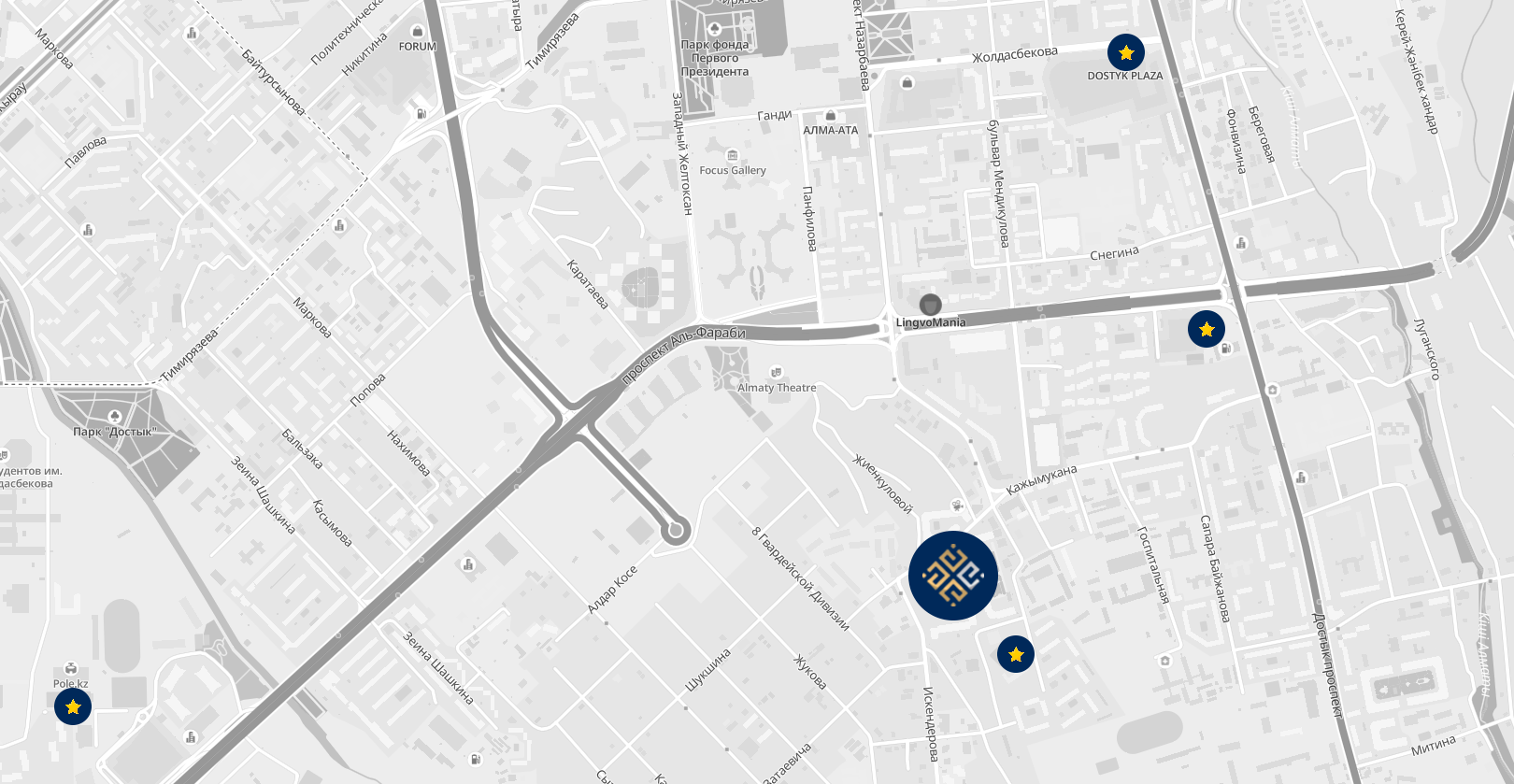 До проспекта Аль-Фараби До музея Almaty Museum of Arts До ТРЦ «Достык Плазы»